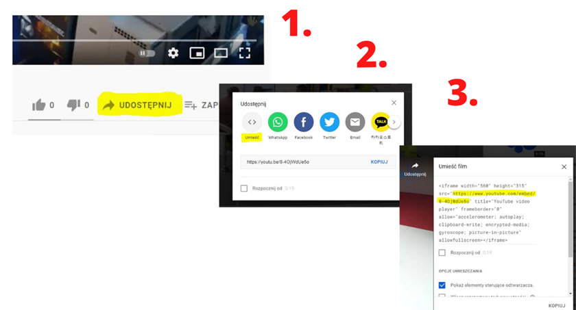 - Runs the "share" button, then "put" or "embeded" in English