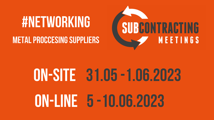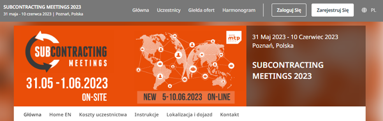 In the 2023 edition, SUBCOTRACTING MEETINGS will be organized from May 31 to June 1, Pavilion 5 - mezzanine, Międzynarodowe Targi Poznańskie. A novelty is the on-line session 5-10.06.2023.