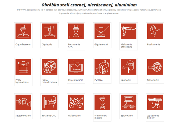 Produkuje również części spawane do ciągników, zamiatarek ulicznych, kosiarek, nośników narzędzi używanych w zieleni miejskiej, jak i bardzo popularnych transporterów marki Multicar.