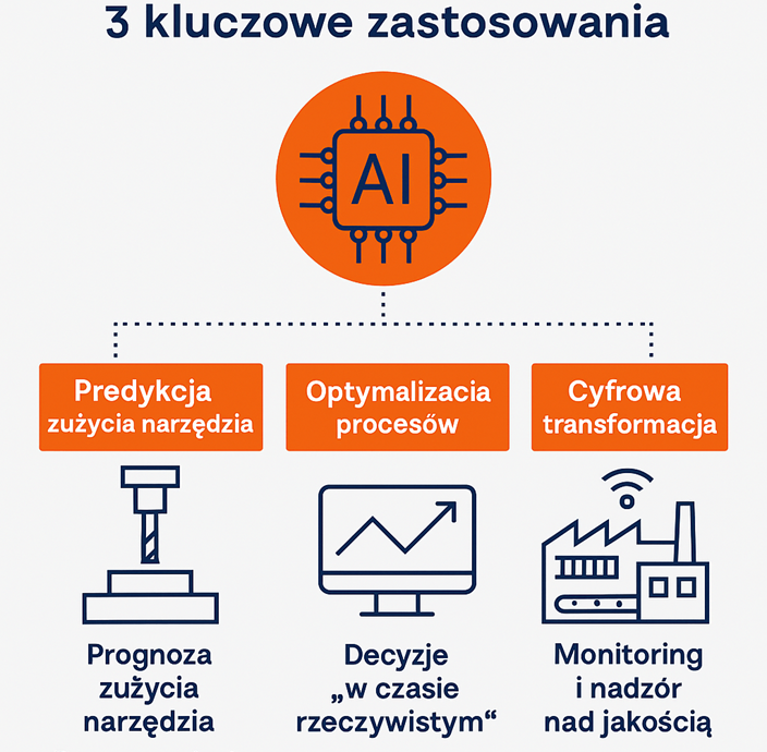 W branży obróbki metali i skrawania coraz częściej wdrażane są rozwiązania oparte na sztucznej inteligencji (AI). Poniżej prezentujemy trzy sprawdzone obszary zastosowań, które już teraz zmieniają sposób działania zakładów produkcyjnych.